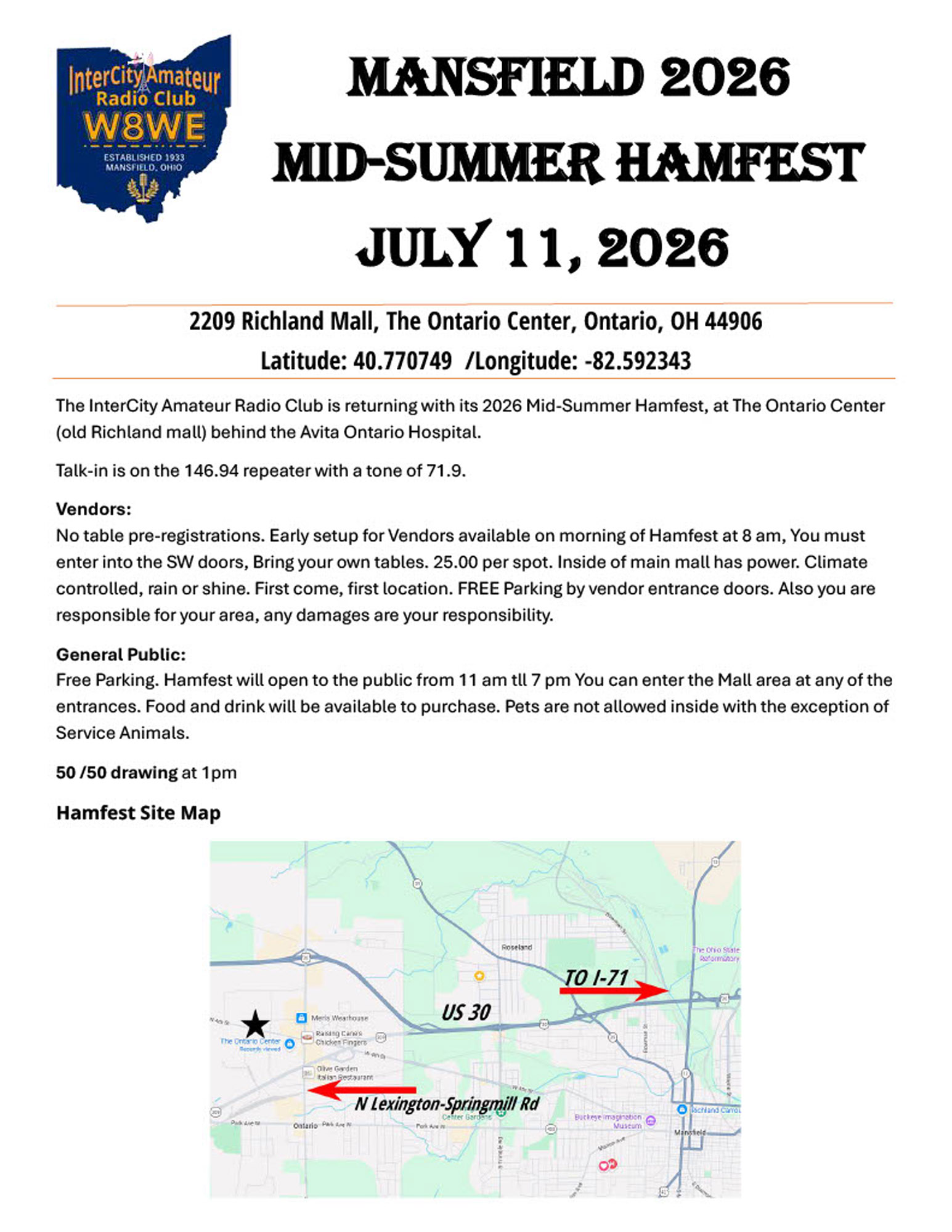Updated Mansfield 2026 Mid-Summer Hamfest - July 11, 2026 NOW: 11am to 7pm