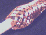 Now the braid is flipped back over the outer insulationFeedpoint closeup