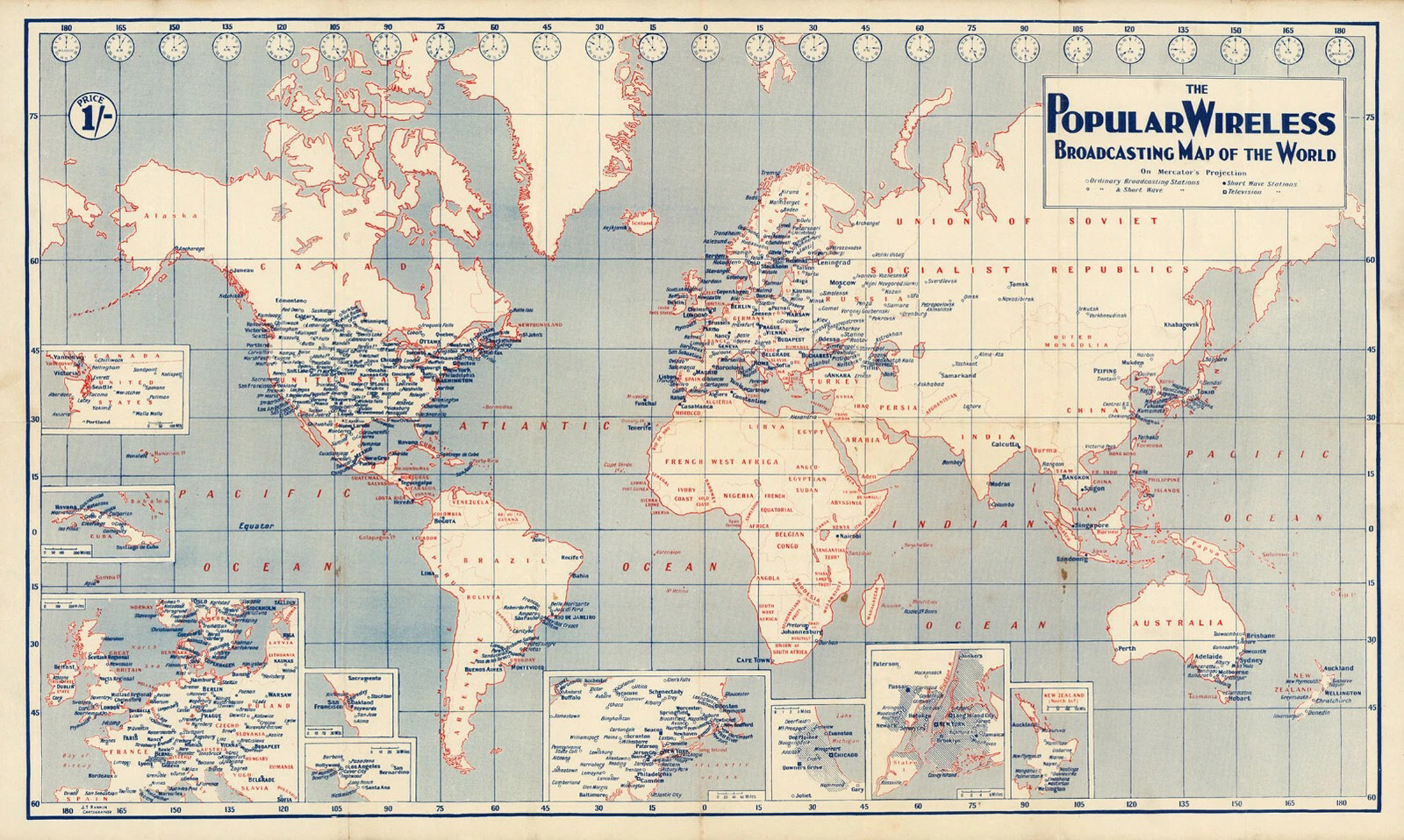 Popular Wireless Broadcasting Map of the World Downloadable graphs and charts 1933 Short wave world wide radio trours Post office radio telephone services 1947 Radio reference map US frequency allocations radio spectrum World map and DXCC country list Popular Wireless Broadcasting Map of the World Popular Wireless Broadcasting Map of the World download